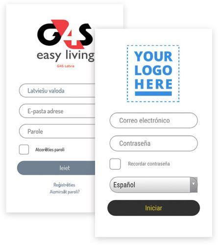 When an installer sets up and hands over a system, their pre-configured logo appears in the app header — the client sees it every day and knows who to call for maintenance or future work.